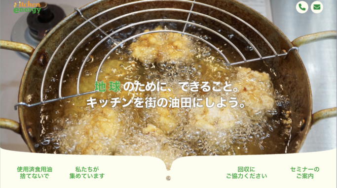 使い終わった食用油、私たちに譲ってください。 それがエコ活動につながります。 廃食油の回収を手がける事業者が集まったブランド、キッチンエナジーの公式サイトをオープンしました。 今後、当サイトで私たちの活動のレポート、セミ…